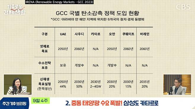 ◇ 최서윤> 중동이 재생에너지 전환에 진지하게 임하고 있다는 게 유관 산업의 방향키 자체가 완전히 전환되고 있다는 의미로도 볼 수 있을 것 같고요.