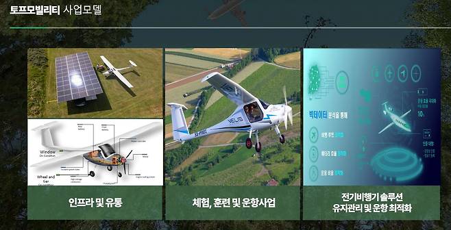 토프모빌리티는 올 2월 국내는 물론 아시아 최초로 전기비행기 인증을 획득했다. 앞서 지난해 4월 미국 텍스트론(textron)과 파트너십을 맺고 전기비행기를 도입했다. 전기비행기 인증을 받은 후 상용화에 나설 예정이다. 텍스트론은 소형 비행기 시장 70%를 점유하는 글로벌 기업이다.