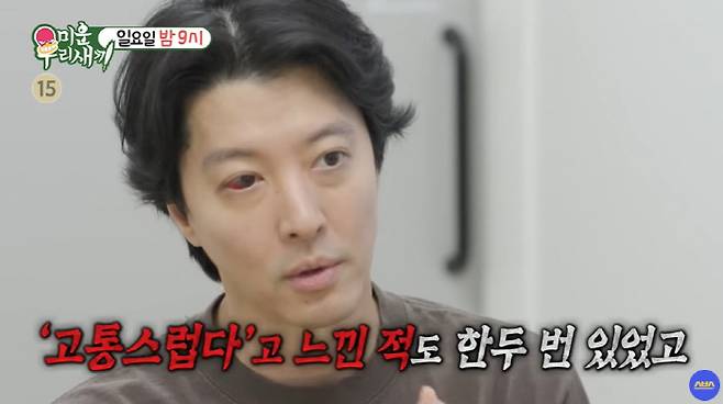 27일 SBS 측은 "우리나라 인구의 1%만 걸린다는 희귀병?! 새빨간 눈으로 나타난 이동건의 충격적인 상태"라면서 '미운 우리 새끼' 예고편을 공개했다.