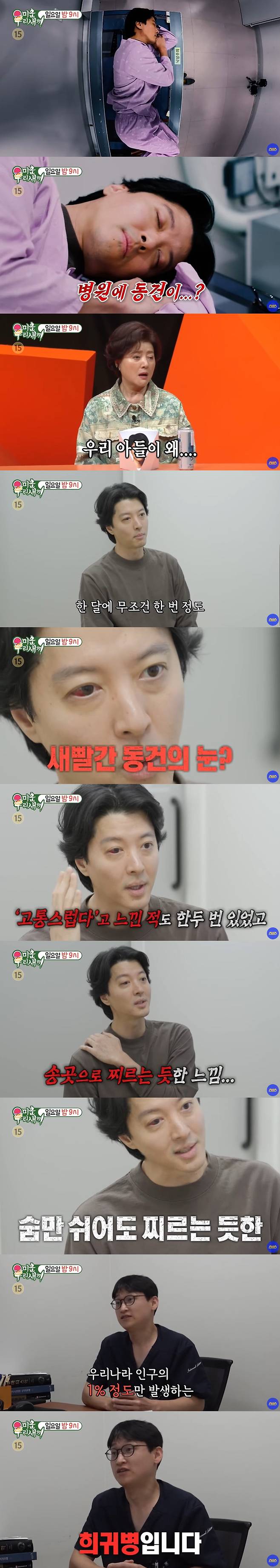 이후 이동건은 "한 달에 무조건 한 번 정도 재발을 한다"고 했고, 그 순간 이동건의 새빨간 눈이 공개돼 충격을 안겼다.