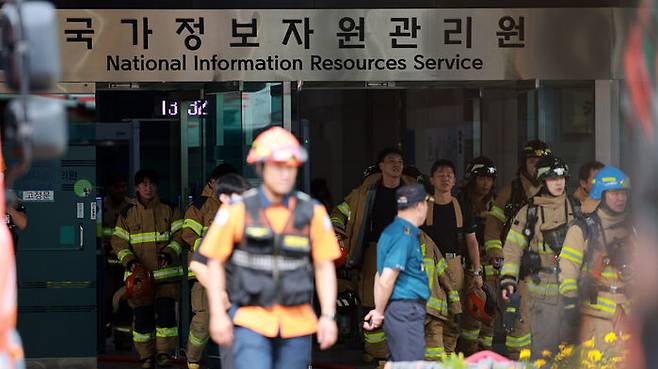 ▲ 27일 대전 유성구 국가정보자원관리원(국정자원)에서 소방대원이 오가고 있다