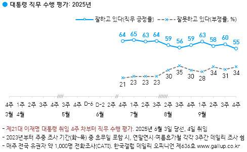 민주당 의원들의 이런 우려는 여론조사 수치로 확인되고 있습니다. 26일 발표한 한국갤럽 정례조사에서 이재명 대통령 직무 긍정 평가는 55%로 취임 이후 최저치를 기록했습니다. 민주당 지지도도 38%로 대선 이후 가장 낮았습니다. (중앙선거여론조사심의위 누리집 참고)