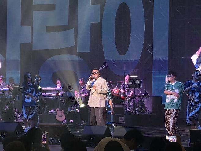 이내 등장한 김건모는 검은 선글라스를 끼고 견장이 달린 재킷 차림에 짧게 자른 머리 모습으로 무대에 섰다. 관객들의 환호 속에 그는 특유의 장난스러움을 잃지 않은 채 입을 열었다.