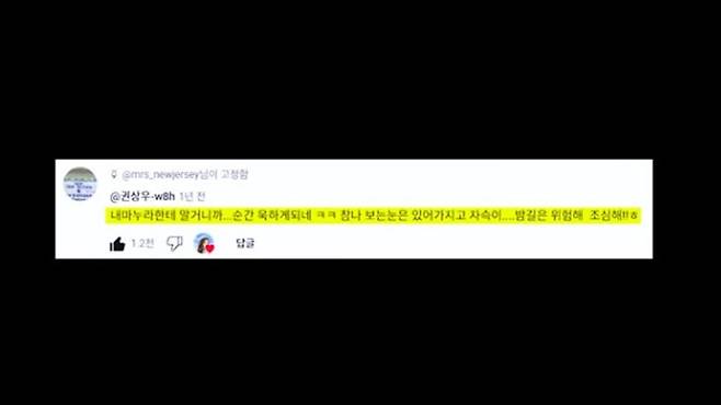 이어 지인은 “우리 맨해튼 갔을 때도 길에서 손태영이 헌팅 당했지 않나”라고 앞서 공개된 영상 속 손태영이 맨해튼 길거리를 걷다가 대시를 받은 상황을 소환했다. 이에 영상에선 “내 마누라한테 말 거니까 순간 욱하게 되네. 참나 보는 눈은 있어가지고...밤길은 위험해 조심해!”라고 권상우가 단 질투폭발 댓글이 소개되며 여전히 신혼 같은 부부의 금슬을 엿보게 했다.