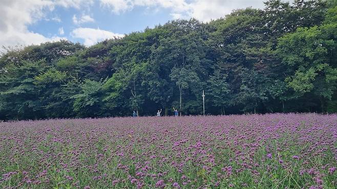 | ▲ 버들마편초 군락 보라색 버들마편초가 환상적이다. 상림숲 주변에는 빨강, 노랑, 보라 각양각색의 가을꽃 군락을 즐길 수 있다. |