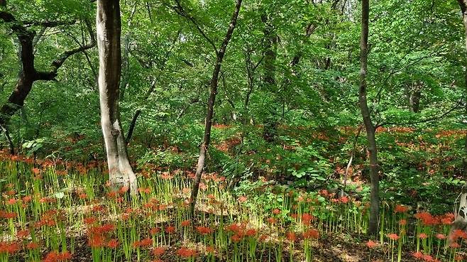 | ▲ 상림숲 꽃무릇 천년숲을 가득 메운 꽃무릇이 만개했다. |
