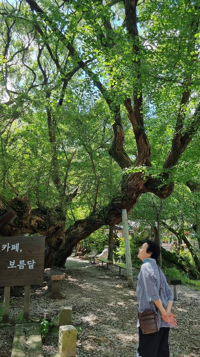 | ▲ 400년 수령의 고목과 어머니 팔순이 훌쩍 넘으신 어머니가 400년 고목을 올려다 보고 있다. |