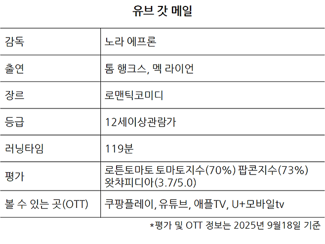 ![‘유브 갓 메일’ 포스터 [IMDb]](https://img4.daumcdn.net/thumb/R658x0.q70/?fname=https://t1.daumcdn.net/news/202509/28/mk/20250928133916422wxjm.png)