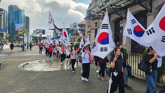 반중 시위대, 도심 행진…"국민의힘이 안 받아준다고 했다"
