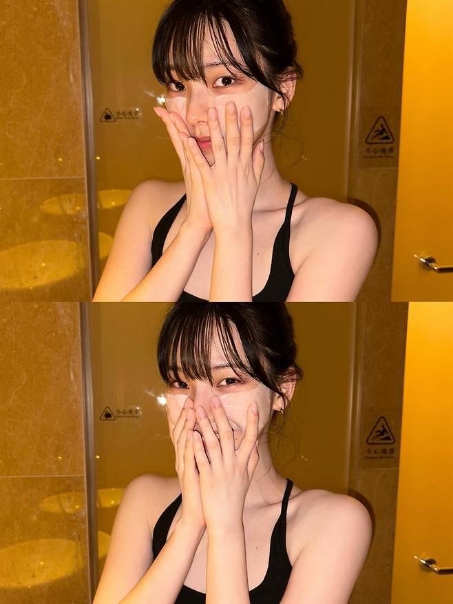이어 스킨케어에 한창인 사진에서는 얼굴에 마스크팩을 붙인 채 두 손으로 얼굴을 가리는 장난스러운 포즈로 청순하면서도 귀여운 매력을 발산했다. 일상에서도 가려지지 않는 ‘AI급 미모’가 감탄을 자아냈다.