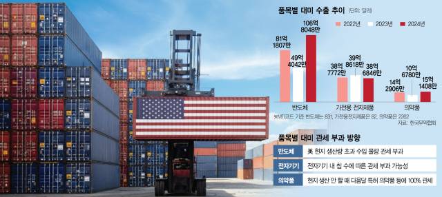 미국이 관세를 무기로 한국 기업에 대한 압박 강도를 더하고 있다. 다음 달부터 당장 수출 의약품에 100% 관세를 부과하는 데 이어 전자제품에 들어간 반도체 수에 따라 관세를 물리는 방안까지 검토 중이라는 소식이 알려졌다. 여기에 미국 내 칩 생산량과 수입량이 ‘1대1’로 매칭되지 않을 때 품목관세를 매길 것으로 전해지면서 국내 업계에는 비상이 걸렸다. 한미 협상이 지지부진한 가운데 미국 정부가 불과 한 달 전에 밝힌 입장마저 손쉽게 뒤집으면서 국내 기업들은 대미 전략 수립에 골머리를 앓고 있다.