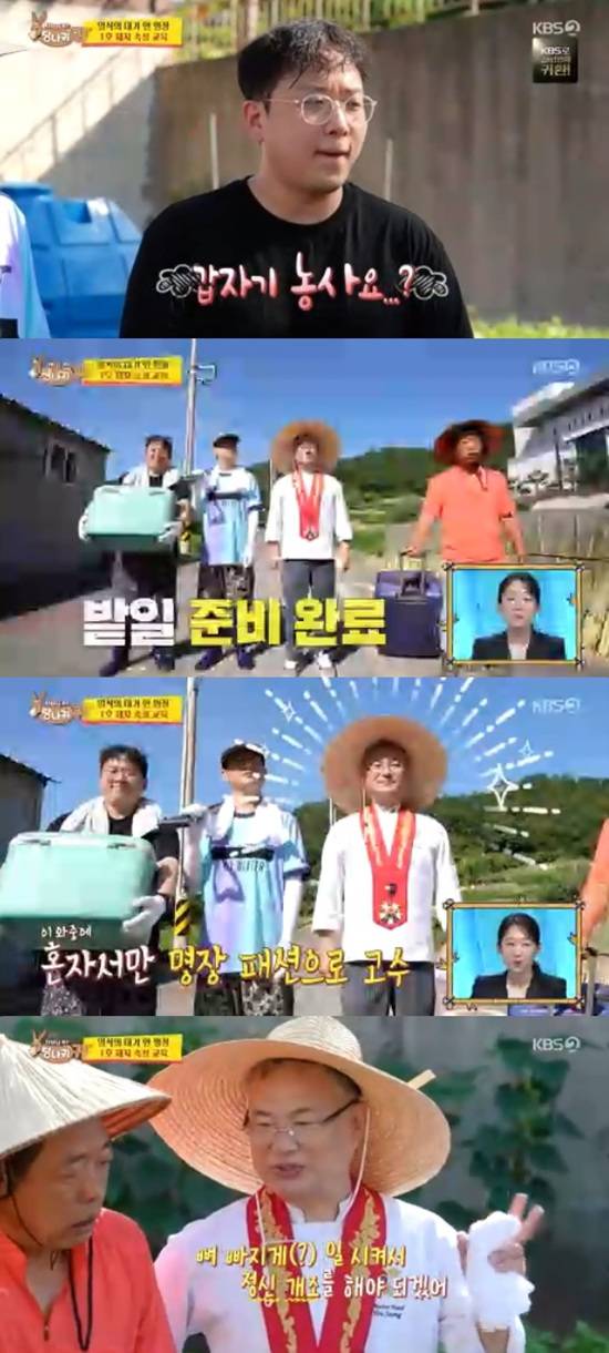 안유성의 후배는 밭에 쑥갓을 심을 것이라면서 더워지기 전에 그늘막을 치는 것까지 해야 한다고 말했다.
