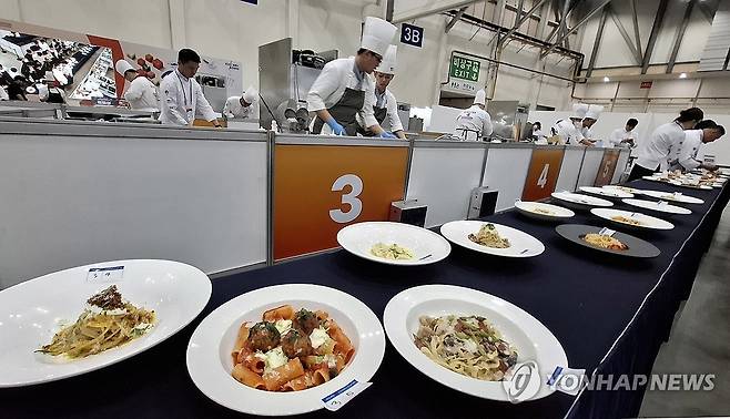 (부산=연합뉴스) 조정호 기자 = 28일 부산 해운대구 벡스코에서 열린 제22회 부산국제음식박람회와 제8회 부산마리나셰프챌린지대회에서 국내외 조리사들이 참가해 실력을 겨루고 있다. 2025.9.28