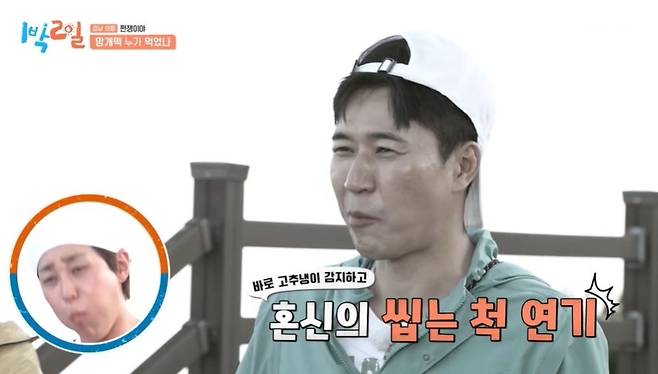 그런 가운데 김문철 팀(김종민, 문세윤, 딘딘)과 호준호(조세호, 이준, 유선호) 팀은 진짜 망개떡을 먹은 멤버를 찾는 미션을 펼쳤다. 먼저 망개떡을 먹은 유선호, 조세호는 표정이 일그러지며 "못 먹겠다"라고 난리를 쳤고, 그에 반해 이준은 조용히 "진짜 못 먹겠다"라고 밝혔다.