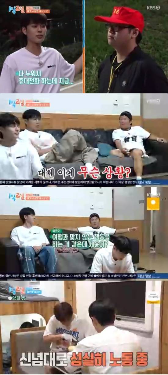 유선호는 교관 모자를 쓴 스태프의 구령에 따라 팔 벌려 뛰기를 했다. 스태프는 "부자는 누워서 휴대폰 보지 않는다는 규칙을 어겼다"고 말했다.