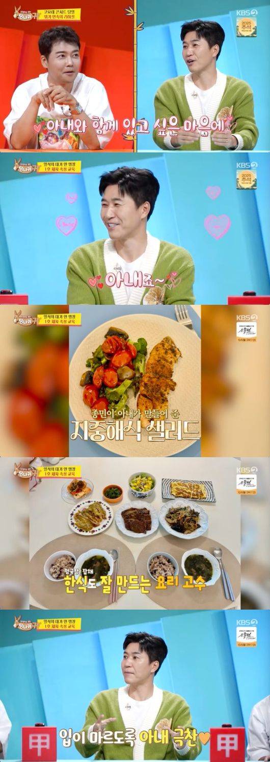 또 김종민은 11살 연하 아내의 음식 솜씨에 대해서 “아직 김치까지는 무리”라면서도 “요리는 잘하다. 파스타, 지중해 음식 샐러드나 이런 거 잘한다. 청국장, 잡채, 미역국 생일 때마다 해준다”라고 자랑하며 애정을 드러냈다.
