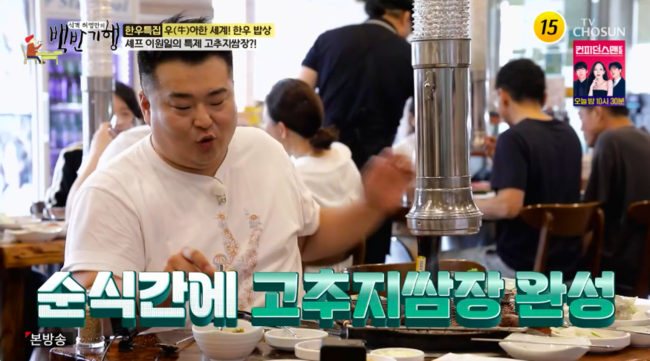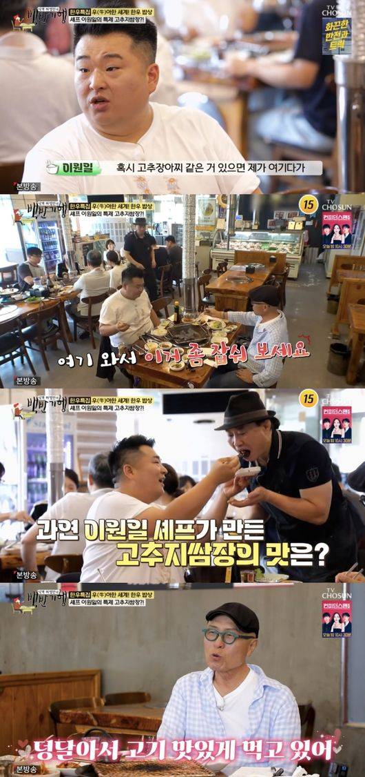 이날 이원일은 허영만과 함께 안심과 새우살을 먹던 중 “혹시 고추장아찌 같은 거 있으면 제가 여기다가 고추지 쌈장 만들겠다. (같이) 먹으면 더 맛있을 거 같은데 만들어볼까요?”라고 해 궁금증을 모았다.