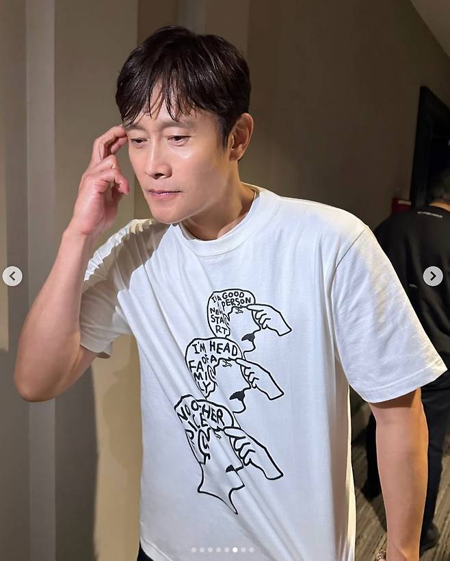 공개된 사진 속 이병헌은 'NO OTHER CHOICE'라는 문구가 새겨진 후드티를 입고 관객들과 만난 모습이다. 그는 영화 속 대사인 "나는 가장이다", "나는 좋은 사람이다"와 함께 시그니처 포즈를 취해 눈길을 끌었다.