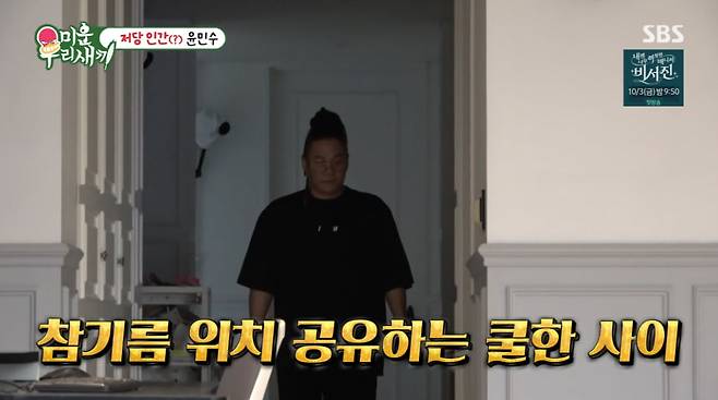 운동을 마친 후 바로 음식을 챙겨 먹던 윤민수는 참기름을 찾던 중 이혼한 아내에게 가 "참기름 어디있어"라고 물어봐 모두를 놀라게 만들었다.