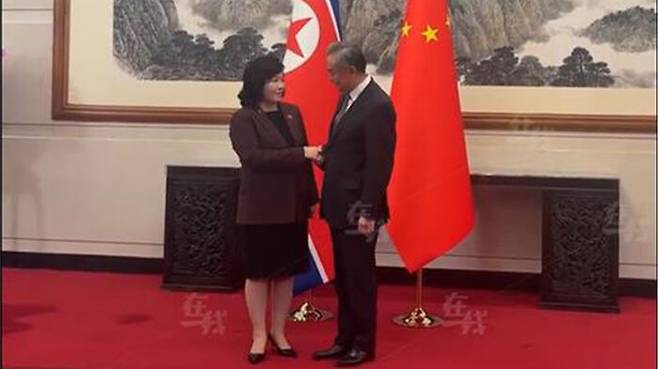 ▲ 28일 베이징서 만난 최선희 북한 외무상과 왕이 중국 외교부장