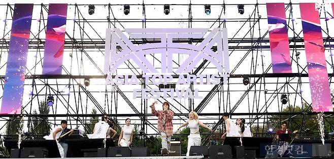 한경미디어그룹이 주최하고 한경닷컴, 한경텐아시아가 주관하는 'ATA 페스티벌 2025(2025 Asia Top Artist Festival)'이 28일 서울 상암동 한강난지공원 젊음의광장에서 열렸다. 'ATA 페스티벌 2025'에 출연한 가수 하성운이 공연을 펼치고 있다.