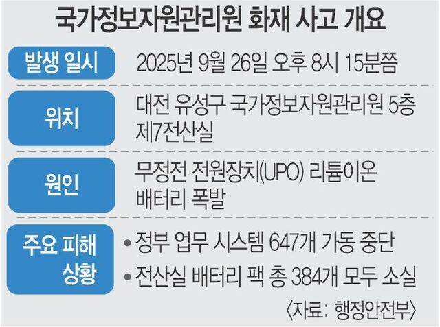 국가 전산망의 심장 역할을 하는 대전 국가정보자원관리원(국정자원)에서 발생한 화재로 정부 온라인 서비스가 줄줄이 멈췄다. 3년 전 카카오톡 먹통 사태를 불러온 SK C&C 판교 데이터센터 화재의 주요 원인이 됐던 무정전 전원장치(UPS)와 서버 이중화 실패라는 두 가지 취약점이 정부 버전으로 되풀이 됐다는 지적이 나온다. 민간 기업의 미흡한 보안·서비스를 강하게 질책해온 정부가 정작 국가 정보 서비스 관리에는 소홀했다는 비판 여론이 커질 것으로 예상된다.
