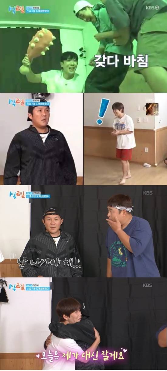 김종민은 누가 방망이에 맞았는지 확인이 가능한 거냐고 물어봤다. 주종현PD는 제작진의 경우 적외선 카메라를 통해 확인할 수 있다고 얘기해줬다.