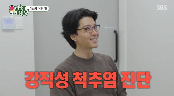 의사는 "반복되면 이상한 거다. 강직성 척추염 가능성이 있다. 척추가 강직되면서 굳어가는 병이다. 우리나라 인구 1% 정도만 발생하는 희귀병이다. 증상으로 포도막염을 겪는다. 다른 증상은 못 느꼈느냐"고 질문했다.