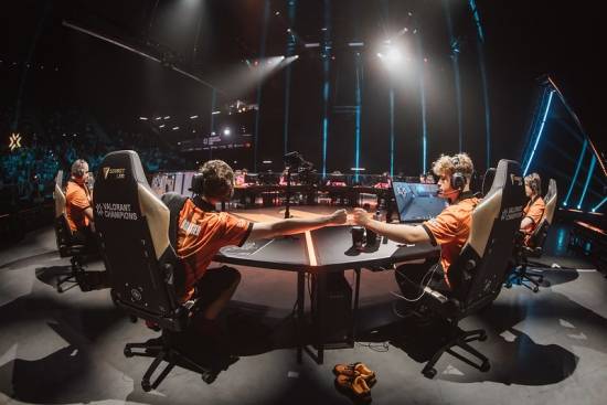 28일(한국 시각) 5대5 대전형 캐릭터 기반 전술 슈팅 게임 '발로란트'의 개발·유통사인 라이엇 게임즈는 프랑스 에브리-쿠르쿠론의 그랑 파리 쉬드 아레나에서 '발로란트' 이스포츠 최고 권위 대회인 '챔피언스 파리'의 플레이오프 4일 차 경기를 진행했다.
