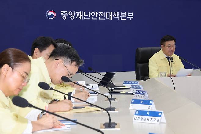 [윤호중 행정안전부 장관이 29일 정부세종청사 중앙재난안전상황실에서 열린 국가정보자원관리원(국정자원) 행정정보시스템 화재 관련 중앙재난안전대책본부 회의에서 사과 발언을 하고 있다. (사진=연합뉴스)]