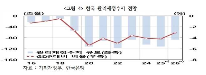 재정이 적자를 내는 것이 일반적이라면 국가채무가 늘어나는 것이 나쁘다는 선입견과 반드시 줄여야 한다는 것도 잘못됐다. 국가채무가 늘어나더라도 관리만 가능하면 큰 문제가 없다는 의미다. 관리 시기도 국가채무가 일단 위험수위가 넘으면 국가신인도 추락 등의 부작용이 큰 만큼 ‘사후’보다 ‘사전’적인 방안이 더 바람직하다.