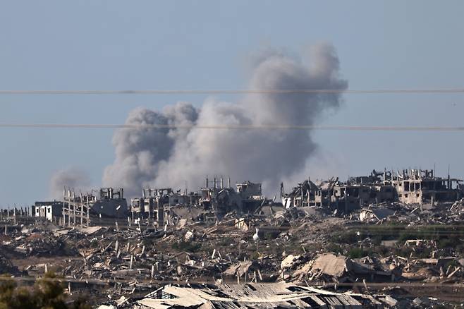 | ▲ 28일(현지시간) 이스라엘군 공격으로 연기 피어오르는 가자시티 |