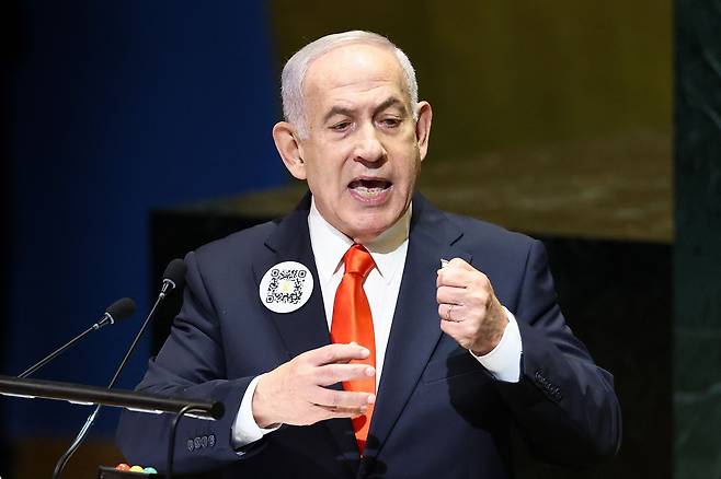 | ▲ 26일(현지시간) 유엔총회에서 연설하는 베냐민 네타냐후 이스라엘 총리. |