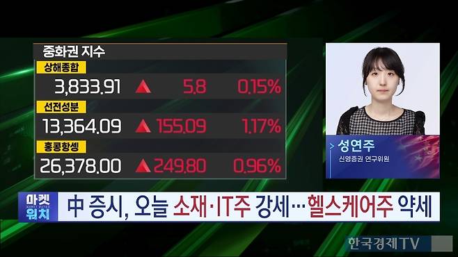 중국 증시 강세…반도체 국산화 영향 소재·IT '훈풍'
