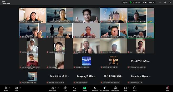 | ▲ 간담회 참가자들. 정윤철감독 (맨 위 가운데)이 엄지척을 하고 있다. |