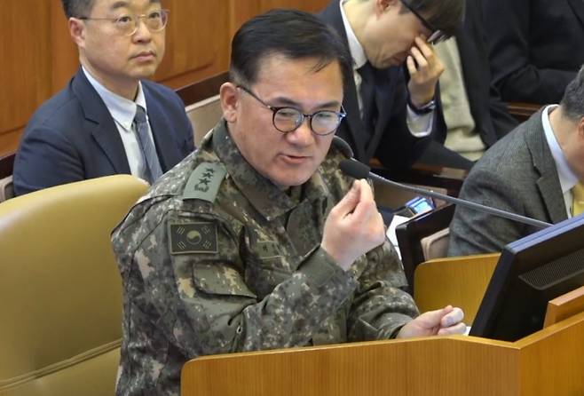 | ▲ 여인형 전 국군방첩사령관이 4일 서울 종로구 헌법재판소에서 열린 윤석열 대통령 탄핵심판 5차 변론기일에 증인으로 출석해 발언하고 있다. |