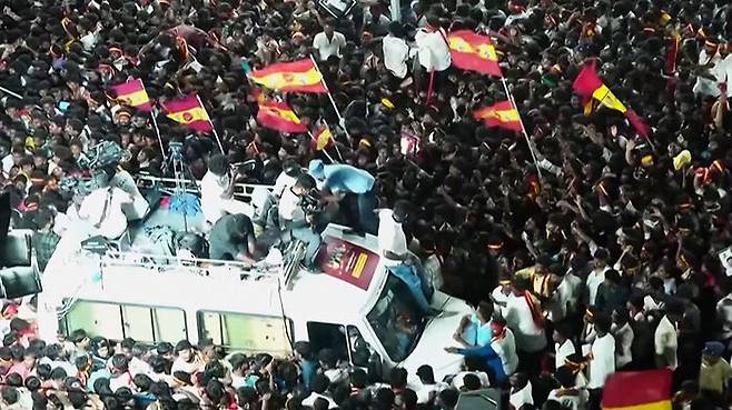 현지 경찰에 따르면 타밀승리연합 측은 유세 행사에 약 1만 명이 참여할 것으로 당국에 사전 신고했으나, 실제로는 3배 가까운 2만 7천여 명이 몰려들었습니다.