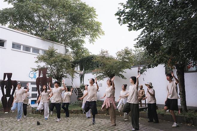 | ▲ 본여성박물관 소녀상 앞에서 '바위처럼'몸짓공연을 펼치고 있는 동백청소년들 |