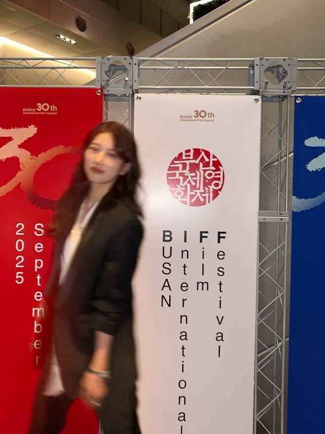 이어진 사진에서는 부산국제영화제 30주년 기념 배너 앞에 선 모습이 담겼다. 또 배우 이진욱과 함께 나란히 앉아 카메라를 응시하는 컷, 행사장 안팎에서 함께 찍은 다정한 사진들이 공개돼 현장 분위기를 생생히 전했다.