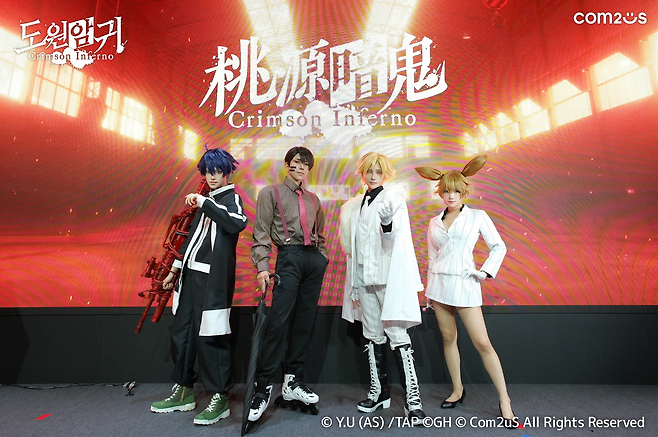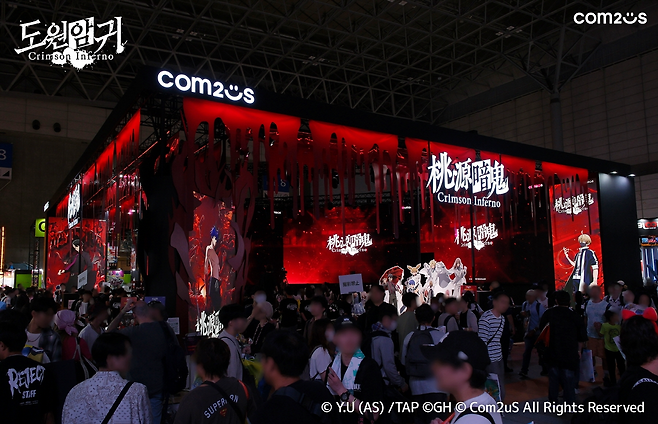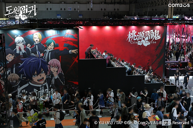 '도원암귀 Crimson Inferno'는 7월부터 방영 중인 TV 애니메이션 '도원암귀(桃源暗鬼, TOUGEN ANKI)'를 기반으로 컴투스가 개발 중인 신작으로, 이번 도쿄게임쇼 일반 전시관에 단독 부스로 참가해 수십만 명의 관람객을 끌어 모으며 전시 기간 내내 높은 흥행 열기를 이어갔다.