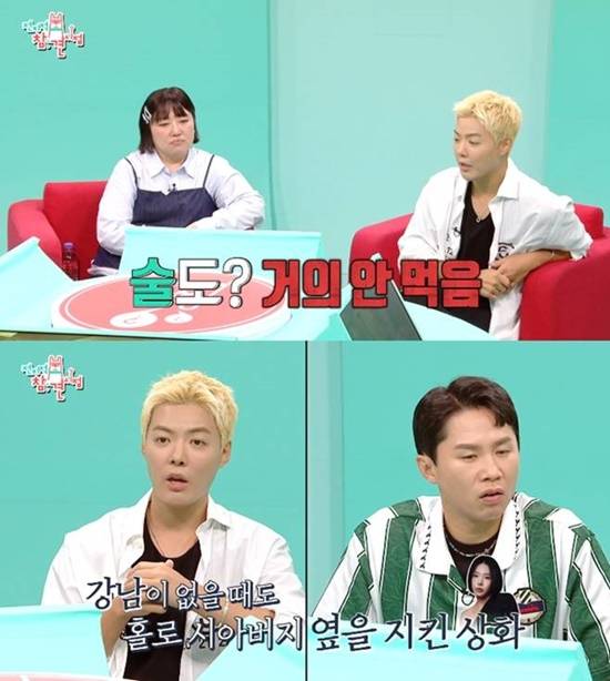 강남은 "길버트 증후군이라는 질환이 있어서, 간을 건강하게 유지해야 한다. 의사 선생님이 (이)상화 씨한테 얘기를 했는데 상화 씨가 너무 충격을 받았더라. 그 때부터 열심히 관리를 해주고 있다"고 전했다.