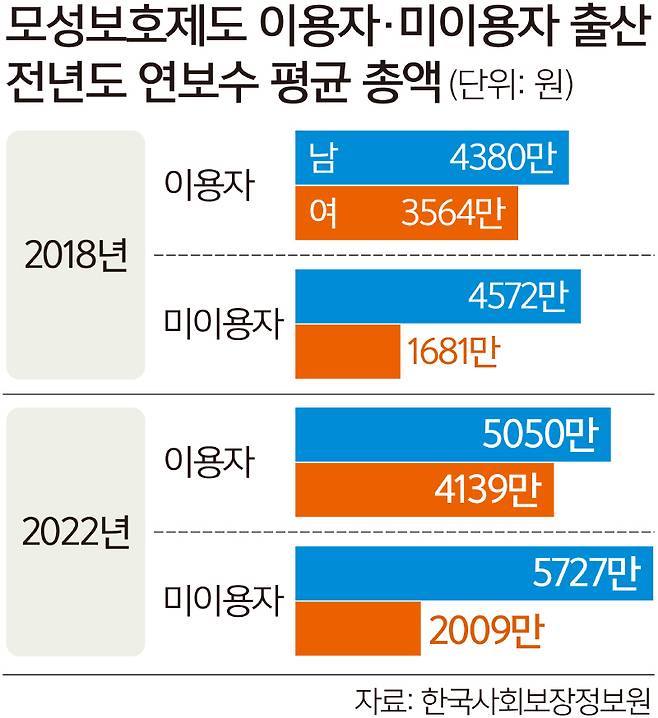 남성은 2018년도 기준 미이용자가 192만원, 2022년도에는 677만원 제도 이용자보다 평균 보수 총액이 컸다.