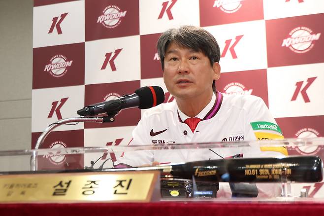 설 신임 감독은 29일 고척스카이돔에서 열린 취임식에서 “감독이 돼 영광이고, 책임감도 무겁게 느끼고 있다”고 말했다. 그러면서 “이기는 야구를 통해 2년 안에 4강(현 포스트시즌 제도는 5강)에 들도록 하겠다”는 포부를 밝혔다.