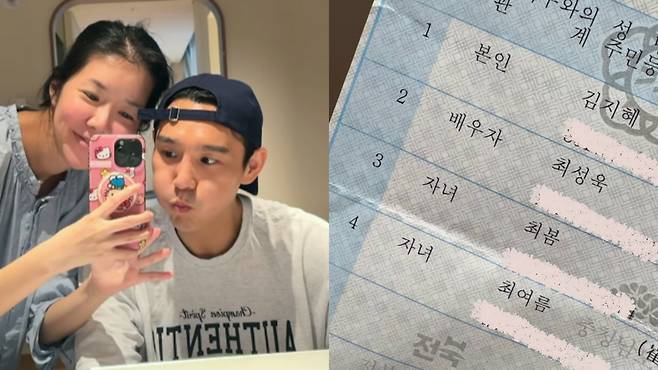 지난 28일 김지혜는 개인 계정을 통해 "둥이들 이름이 생겼다"는 글과 함께 사진 한 장을 공개했다. 사진 속에는 갓 태어난 아이들의 이름이 주민등록 등본에 적힌 모습이 담겨 있었다. 김지혜는 "첫째는 여자아이로 이름은 최봄, 둘째는 남자아이로 최여름"이라고 두 아이의 이름을 직접 소개했다.