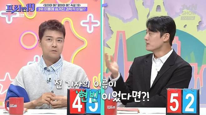 이를 듣던 한석준은 "예쁜 이름을 가지면 나도 모르게 예뻐질 수 있다는 것이냐?"라고 물었다. 그러자 오상진은 "예를 들어 전현무의 이름이 현무가 아니라 현빈이었다면 어땠을까?"라고 질문했다.