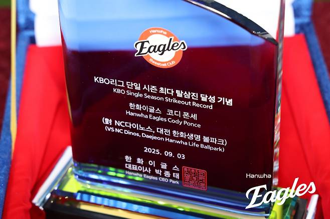 김경문 한화 감독은 29일 "(폰세와 라이언 와이스가) 이렇게 많이 던진 시즌은 처음"이라면서도 "폰세가 남은 경기에서 한 차례 등판해 최대 5이닝을 투구할 계획"이라고 밝혔다. 폰세는 정규시즌 마지막 등판에서 탈삼진 4개를 추가해야 다시 앤더슨에 앞설 수 있다.