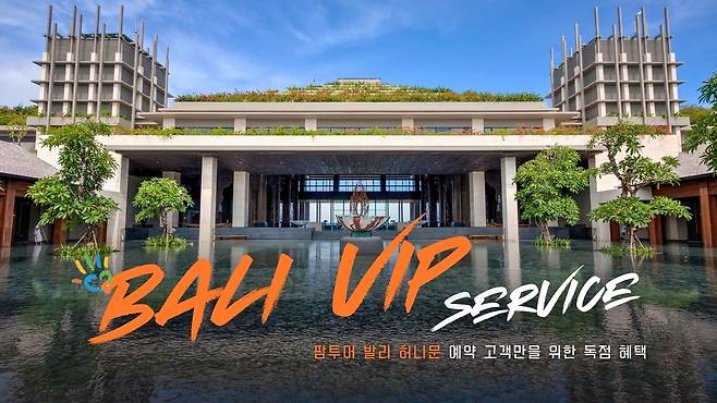 팜투어가 발리 고급 풀빌라 신혼여행 상품에 선보인 ‘VIP 샌딩 서비스’가 관심을 모으고 있다. 늦은 저녁 한국행 항공편을 이용하는 고객들이 출국 전까지 발리 응우라 라이 공항 부지 안에 위치한 5성급 호텔 객실에서 휴식과 환복, 식사를 즐길 수 있도록 하는 팜투어만의 차별화된 프리미엄 서비스다.