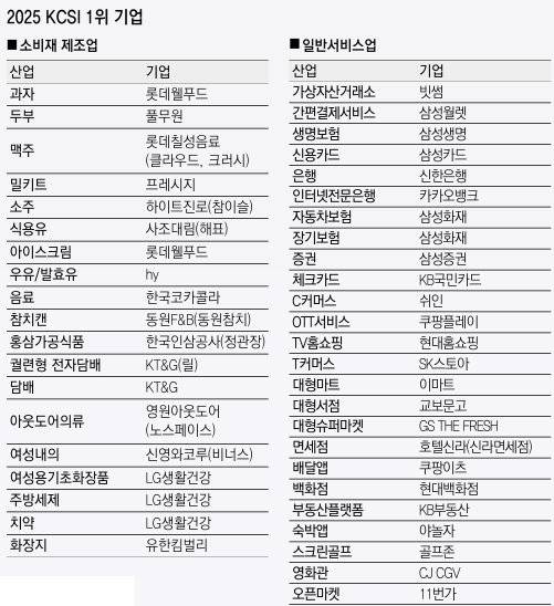2025년 KCSI 산업별 주요 결과는 다음과 같다.