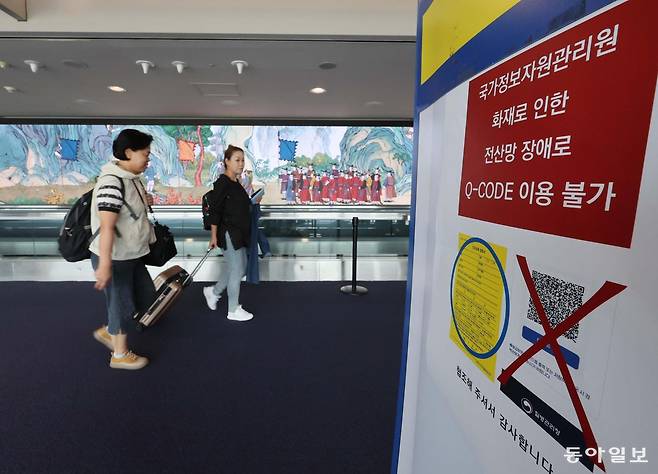 | 인천공항 자동검역 ‘큐코드’ 먹통 29일 인천국제공항 제1터미널 자동검역심사대에 ‘Q-CODE(큐코드) 이용이 불가하다’는 내용의 안내문이 붙어 있다. 인천=전영한 기자 scoopjyh@donga.com |