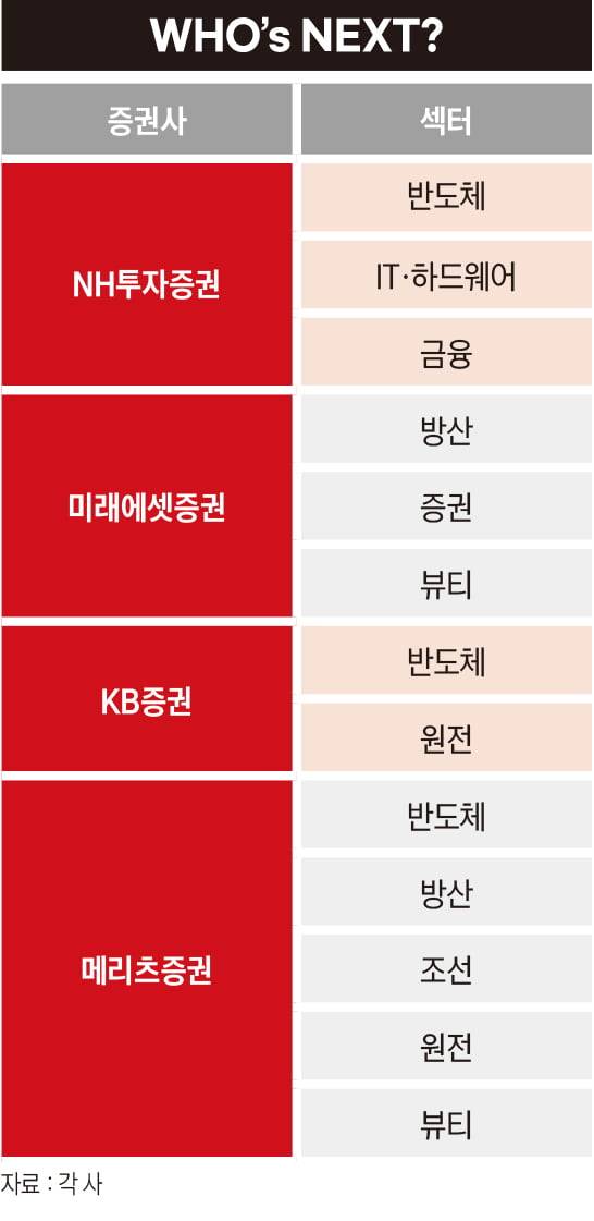 리서치센터의 반도체 최선호주는 SK하이닉스다. 조수홍 NH투자증권 리서치센터장도 “SK하이닉스는 고성능 메모리 기술력을 기반으로 경쟁사와 차별화된 글로벌 1위 메모리 업체로 부상했다”며 “AI의 핵심인 eSSD와 HBM 비중 확대에 힘입어 견조한 실적을 이어갈 것”이라고 전망했다.